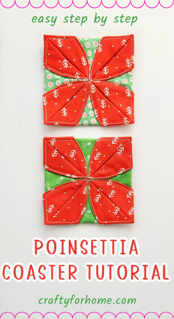 Optional: topstitch the center of each petal or leave it open. The Poinsettia Christmas coaster is ready to use now.