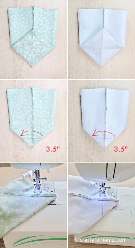 Mark 3.5″ across the fold on both sides, then draw a line connecting the marked spots. Sew along the line.